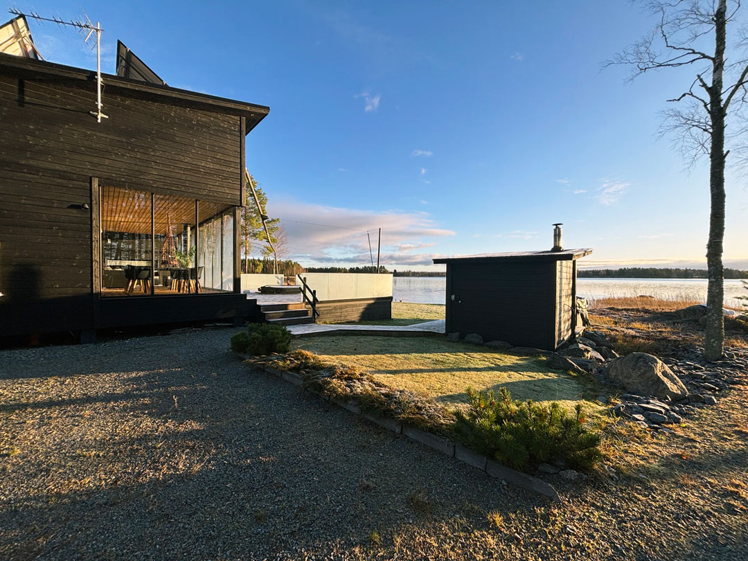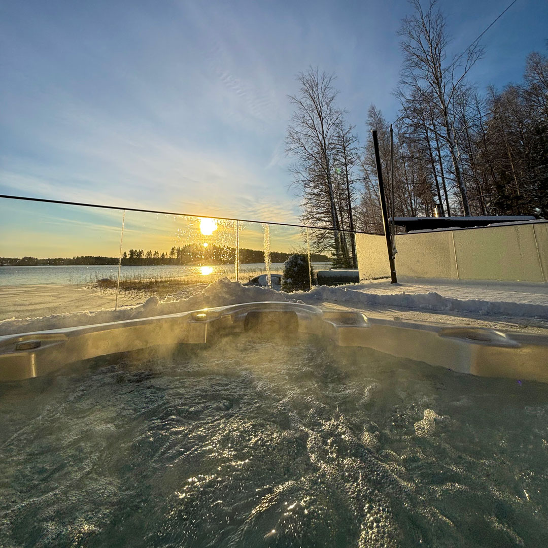 Illaksi palasimme takaisin mökille, jossa päivä päätettiin yhdessä valmistetulla päivällisellä. Keittiössä riitti puheensorinaa, ja ruuan jälkeen ilta jatkui saunomisen ja paljun merkeissä. Pakkassää toi pientä kirpeyttä ilmaan, mutta lämmin vesi, rauhallinen järvimaisema ja hyvä seura loivat täydellisen päätöksen päivälle.
